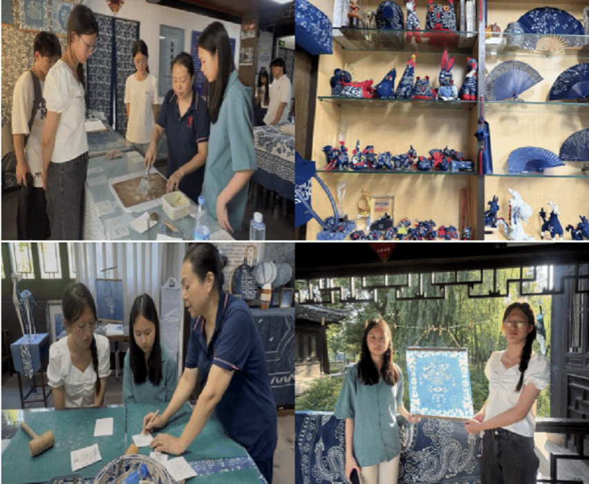团队成员体验蓝印花印染工艺的全过程