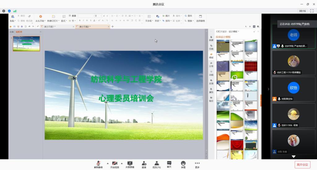 织心湾心理工作站在腾讯会议云端开展了本学期第二次心理委员培训。本次培训的主题是“正确认识自己”,主讲人是织心湾心理工作站指导老师严蔷薇老师,织心湾站长曾欣怡主持。