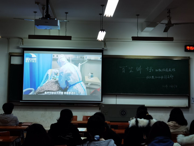 团日活动中,各班班长为同学们讲述老一辈人脱贫攻坚的故事,并组织同学对他们伟大的精神进行学习,呼吁同学们成长成才。接下来,各班团支书为同学们讲述今年疫情中医护人员在一线英勇抗击新冠肺炎疫情的故事,并再次向同学们强调了新型冠状肺炎病毒的传播途径和预防措施,呼吁大家做好个人防护工作,保持健康身体状态。接下来,各班团支书带领同学们观看了记录疫情爆发初期一线医护人员工作情况的纪录片。通过记录片,大家都更加深入的了解了新冠肺炎的可怕与当时在抗疫一线的医护人员的艰辛。视频向同学们介绍了一直以来在前线与疫情斗争的抗疫英雄。其中有最先发出新冠病毒传播警告并始终坚持在抗疫一线最后不幸感染去世的武汉医生李文亮;84岁仍挂帅出征的中国工程院院士钟南山;一天只睡3小时只为找到治疗方案的73岁院士李兰芳;放弃过年与家人团聚第一时间赶去一线抗疫的医生李倩。在这场没有硝烟的战场下伴随着众多的无名英雄,无私奉献着,沉默寡言着,但以实际行动参与这场抗疫攻坚战。他们有的是工人,有的是司机,有的是白衣天使,有的是快递员....,他们都是这次战疫中“最可爱的人”!