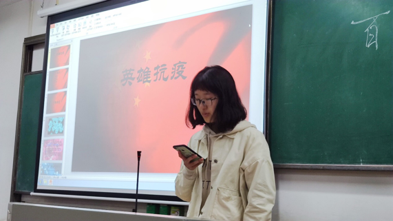 (优秀团员陈梦语为同学们讲述战疫故事)