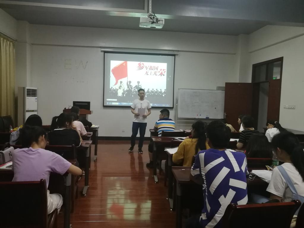针对全院学生开展应征入伍宣讲,学院辅导员严蔷薇、肖娟、李亮分别对所带学生组织主题班会教育。
