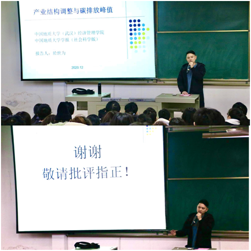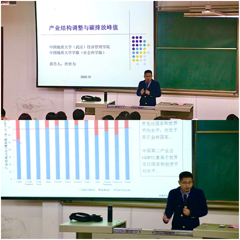 於世为教授的讲坛,给同学们普及了碳排放量形势以及产业结构调整的相关内容。让我们了解到产业结构对碳排放量的影响。通过此次讲座,同学们获益良多,同学们纷纷表示应该从自我做起,减少碳排放量,为实现习近平主席提出的“努力争取2060年前实现碳中和”的目标尽一份力,为世界环保事业添砖加瓦!