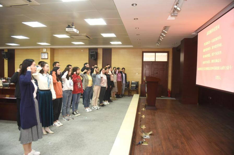 辅导员严蔷薇老师带领新进辅导员进行了庄严的集体宣誓。