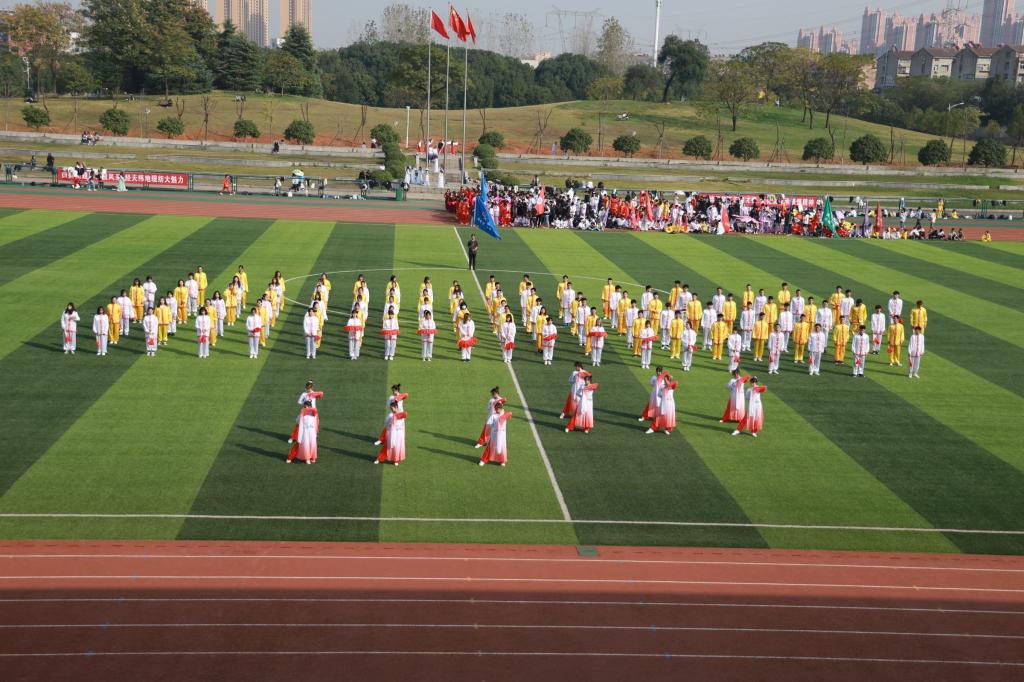 太极音乐结束,队伍再次列队,跟随纺院旗帜整齐退出场地,到这里,纺院的太极拳比赛正式落下帷幕!