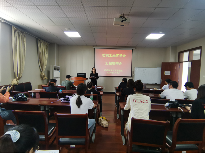 于5月8日14:00在8h502举行纺织之光奖学金汇报答辩会。答辩会由辅导员严蔷薇主持,芒果tv