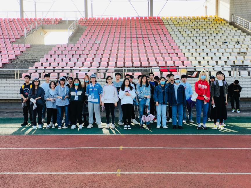 学生阳光向上,精神饱满的良好状态。活动开始同学们对看台下的座椅进行了清扫,随后一直往后排座椅进行擦拭。由于座椅上有很多灰尘还有鸟的排泄物,于是同学们在看台上进行了集中的清扫活动,对灰尘进行了处理,取得了较好的效果。
