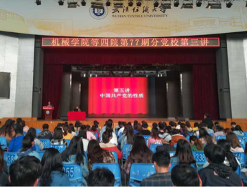 、机械学院、管理学院和材料学院于2019年4月4日下午在大活演播厅举办入党教育活动——中国共产党的性质。本次党课由机械学院肖信华老师主讲,四院党校学员参加本次党课。