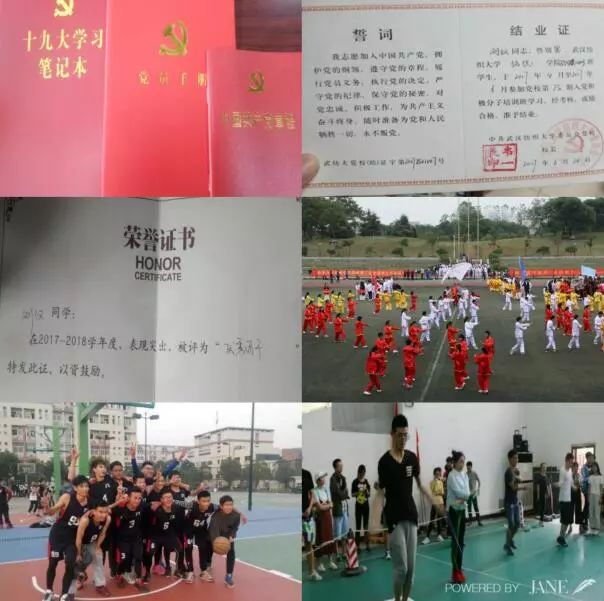 在学习生活中他也争当领头羊,获得了国家励志奖学金、健全助学金,以及英语四级证书、普通话证书等证书,获得了溢达杯三等奖,一项实用型专利也正在审核中。在新时代爱国主义精神熏陶下,他向往成为一名党员,向往成为以为人民服务为宗旨的人。所以他自从大一入学以来便积极定期参加各种主题团日活动,并在大一下学期积极参加党课培训,同时顺利获得了结业证书,并于2018年6月份成为一名预备党员,并获得了校“优秀共青团干部”称号。这些经历使他的思想得到了成长,也促进了他人生初期的人生观、价值观、历史观的形成。