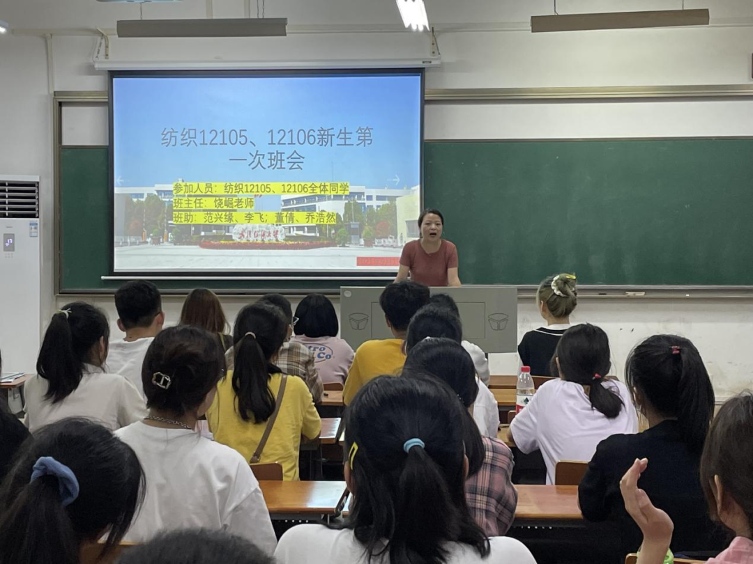 会议伊始,各个班级点名确保新生均到现场参加班会后,由班主任寄语新生,主要强调了安全意识和防范诈骗意识,避免陷入诈骗陷阱。同时也向新生们大致介绍了大学生活的多样性,并对他们即将开始的大学生活寄予殷切的期望和要求,鼓励大家努力学习,珍惜时光,不浪费大学生活的每一天,接着对纺织专业做了简单的介绍。其中,陈海书记还参与到各班班会,给同学们专业引导,让同学们对本专业有明确的认知,端正学习态度。接着是新生以及副班主任的自我介绍,通过自我介绍拉近彼此之间的距离,活跃班级气氛。副班主任们对新生们提出一些大学生活的建议,不断充实自己,切勿虚度光阴。班会最后,各班班级进行了临时负责人的推选,经过同学们的自荐和票选后选出了两位班级负责人,对班级接下去一段时间的学习生活进行管理,并且由各班副班主任带领新生观看并学习了芒果tv