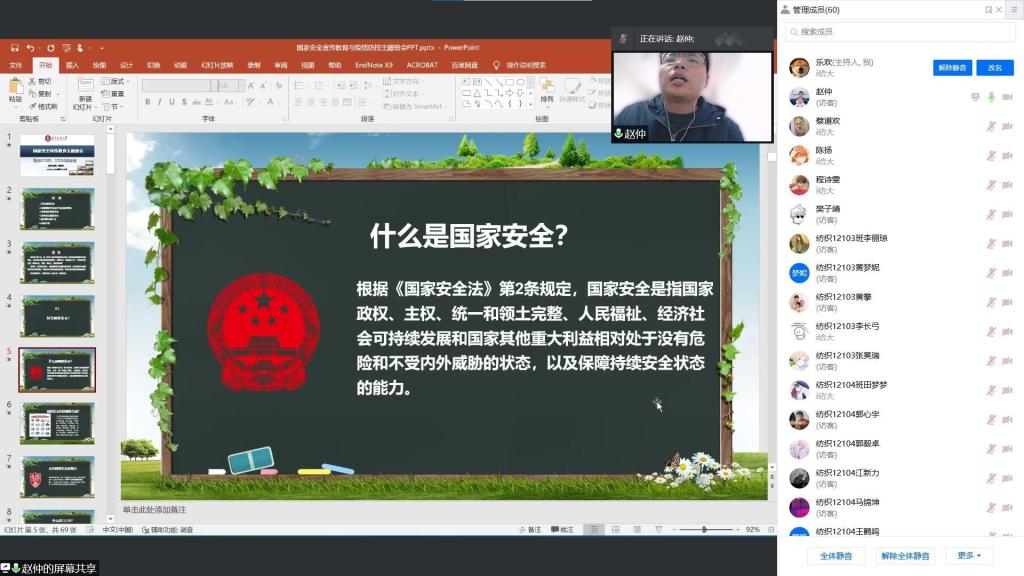 各年级各班于4月17日下午开展“国家安全宣传教育”的主题班会,全院班主任、辅导员、在校生通过线上线下的方式共同参与。