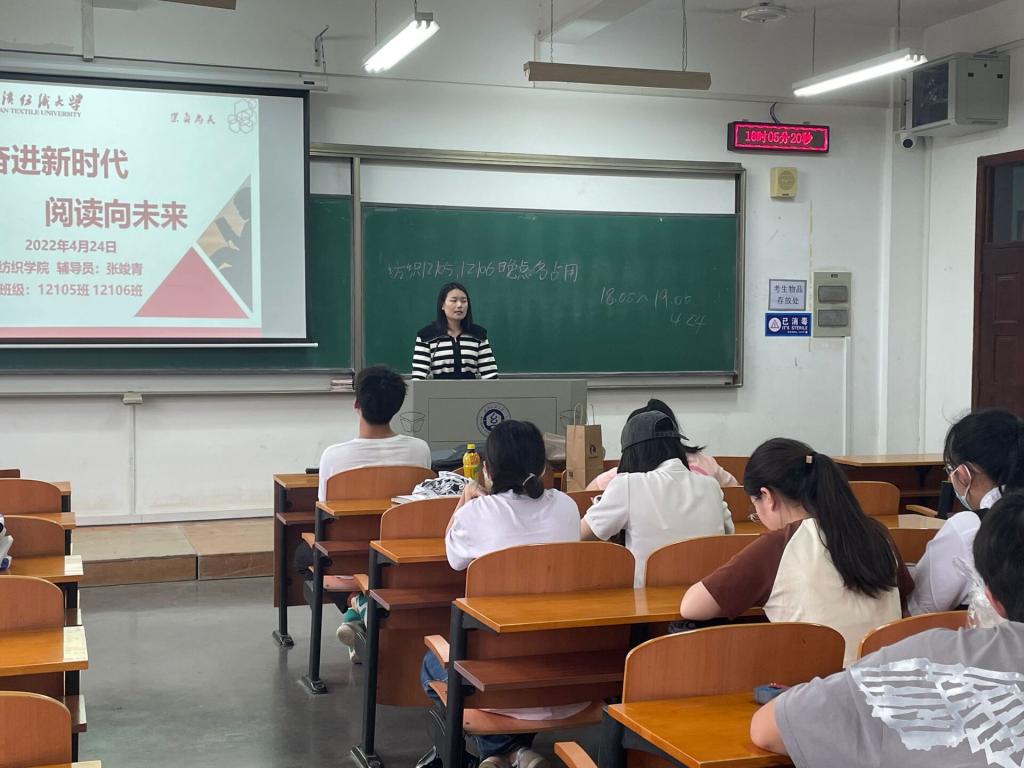 在21级现场,辅导员张竣青老师分别从4月23日是读书日引入,提出希望同学们利用好学校图书馆的资源,同时纺织12105班和纺织12106班的学习委员王天骄和冯林分享了《洛丽塔》和《人生》两本书籍以及读书心得,在这基础上张竣青老师总结道,在日常生活中要从不同的角度去看待事情,未来的生活都是未知的,我们都要以积极乐观的心态去面对,要珍惜当下的生活。并提醒同学们在面对各种网络信息时,要理性思考,判断信息真伪,做到不造谣,不传谣。不轻信“标题党”、不轻易“跟风”、不进莫名其妙的聊天群、不传播来源不明的文章。并且进一步强调了现阶段疫情局势的严峻,要求同学们要遵守学院的规章制度,积极配合学校疫情防控工作,最后张竣青老师强调,在学校里不允许任何的宗教活动,并希望各位同学以身作则。