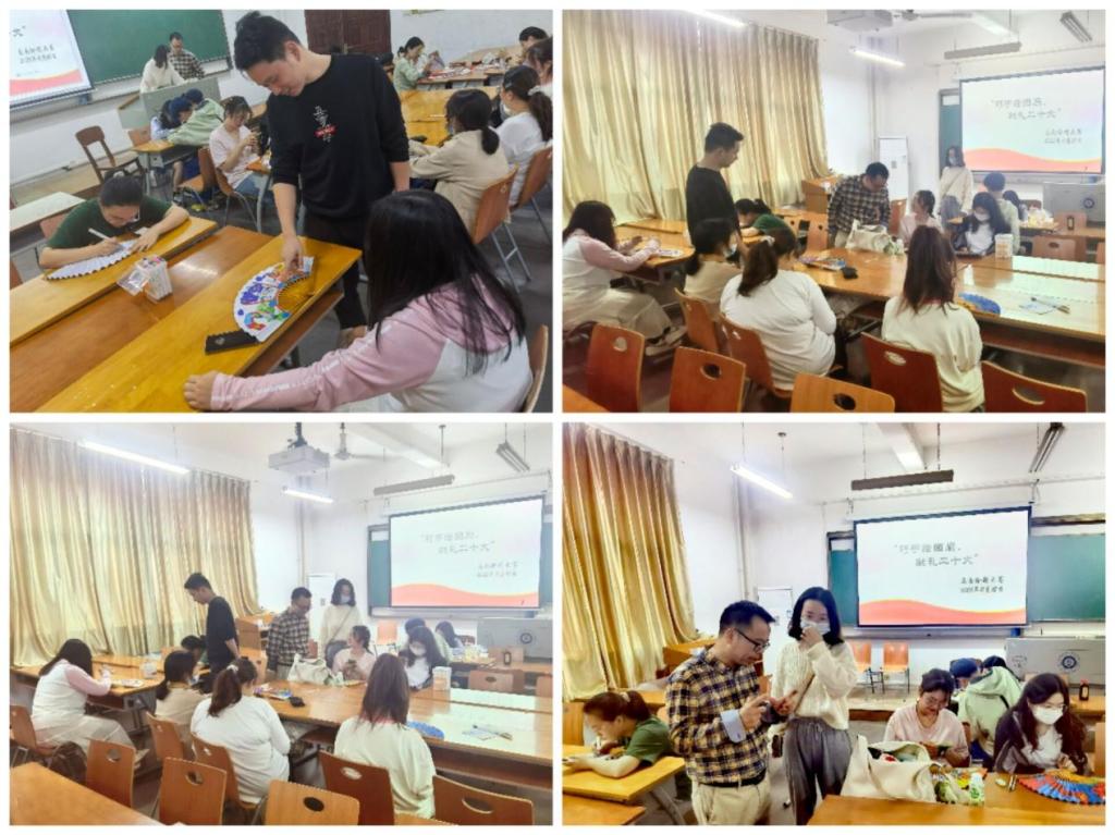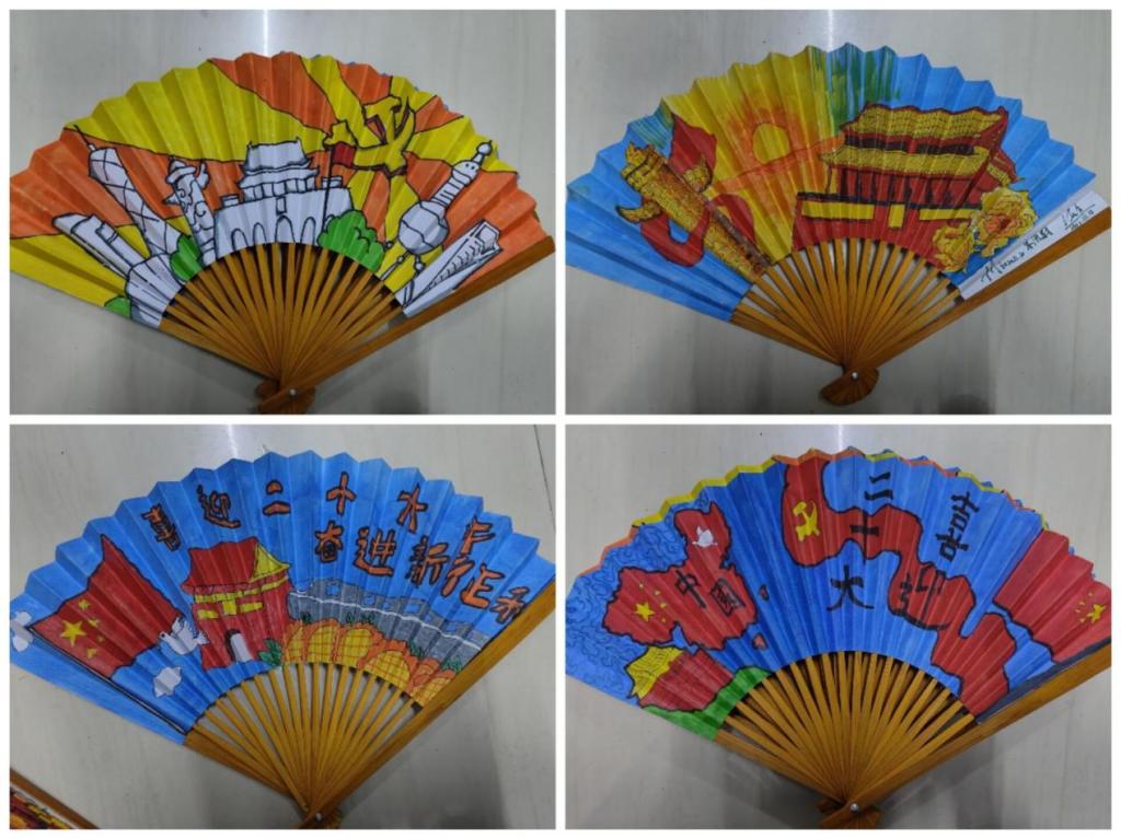 在03-213教室开展以“巧手绘团扇,献礼二十大”为主题的画扇绘制大赛。芒果tv