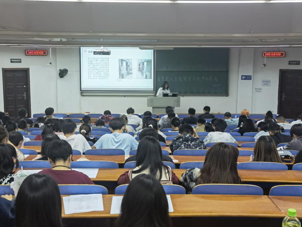 接下来,由宿管会部长向同学们介绍宿管会日常工作和本次寝室文化节的相关内容。主要从寝室卫生的重要性、卫生检查的注意事项、评分细则及宿舍违禁品等多个方面细致讲解院公检的要求。同时,鼓励同学们积极参加此次寝室文化节,增强寝室成员的集体荣誉感和团结协作能力。