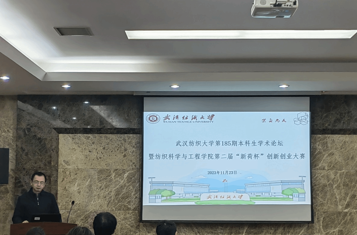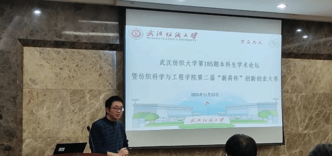 参加本次论坛的各项目汇报人依次介绍自己的项目。刘东方介绍了一种供液可调的光热蒸发芯鞘纱,陆佳润介绍了“竹衣净水—生物质资源利用的领导者”项目,顾佳音介绍了“兴农麻业”项目,刘鑫介绍了“一衣多穿”-草木染天然变色服装面料,杨梦雪介绍了一种手持式纳米纤维智能喷射器,雷一鸣介绍了“室内空气净化”项目,祝元宵介绍了纳米纤维基温度响应型智能保暖气凝胶絮片,王瑞雪介绍了‘蓝天卫士——让“麻”烦不再麻烦’项目,占晨晨介绍了“翼笙科技——本征抗菌面料的开拓者”项目,师博介绍了“守住一抹蓝——荆楚蓝染非遗活化融合创新一体化方案”项目,唐予言介绍了一种高性能混编复合绳,王胜男介绍了高效海水淡化织物,武艺霖介绍了“废弃咖啡渣色素提取及对蚕丝的染色”项目,吴梦涵介绍了无“声”而“织”-高性能气凝胶隔音降噪材料。各位同学汇报结束后,评委老师就项目内容与汇报的同学进行了交流,对各个项目进行了点评指导。