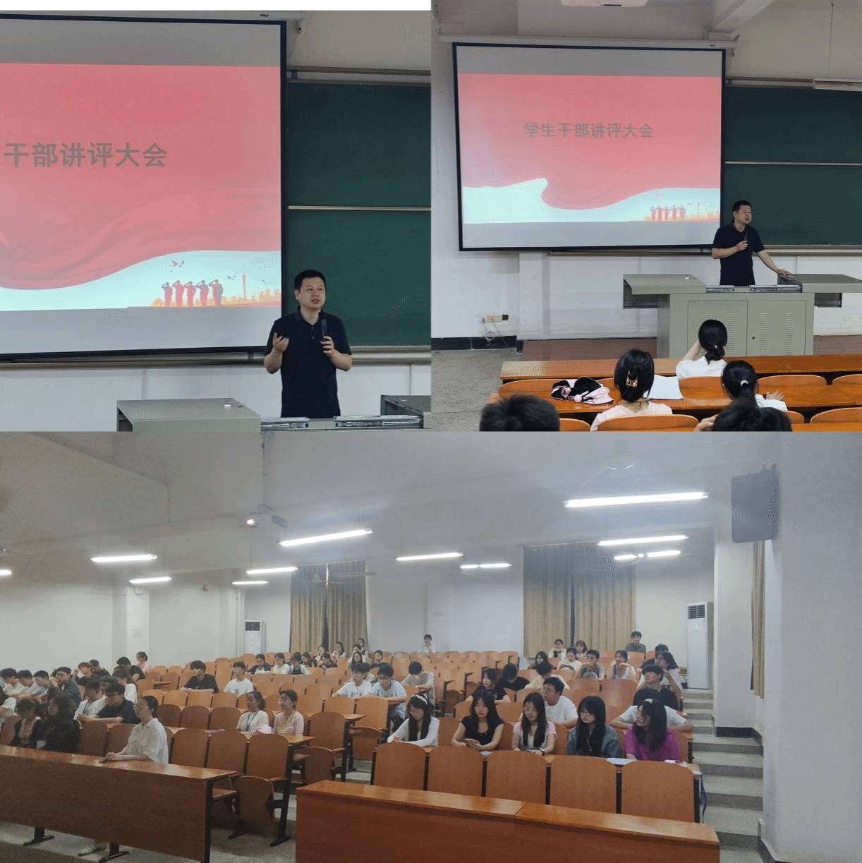 团委学生会在8Ft101教室召开学生干部讲评大会,学院学生工作负责人赵亮老师、团委负责人吴童玲老师出席会议,本届学生会及团委全体学生干部参会。