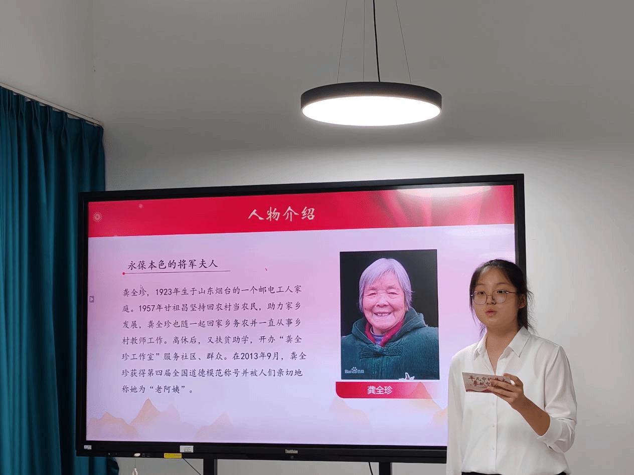 学纺织工程专业学生第二党支部党员代表李杨讲述道,她正走在纺织文化传承与创新的领航路上,以龚全珍精神为指引,用实际行动彰显新时代纺大学子的责任与担当。