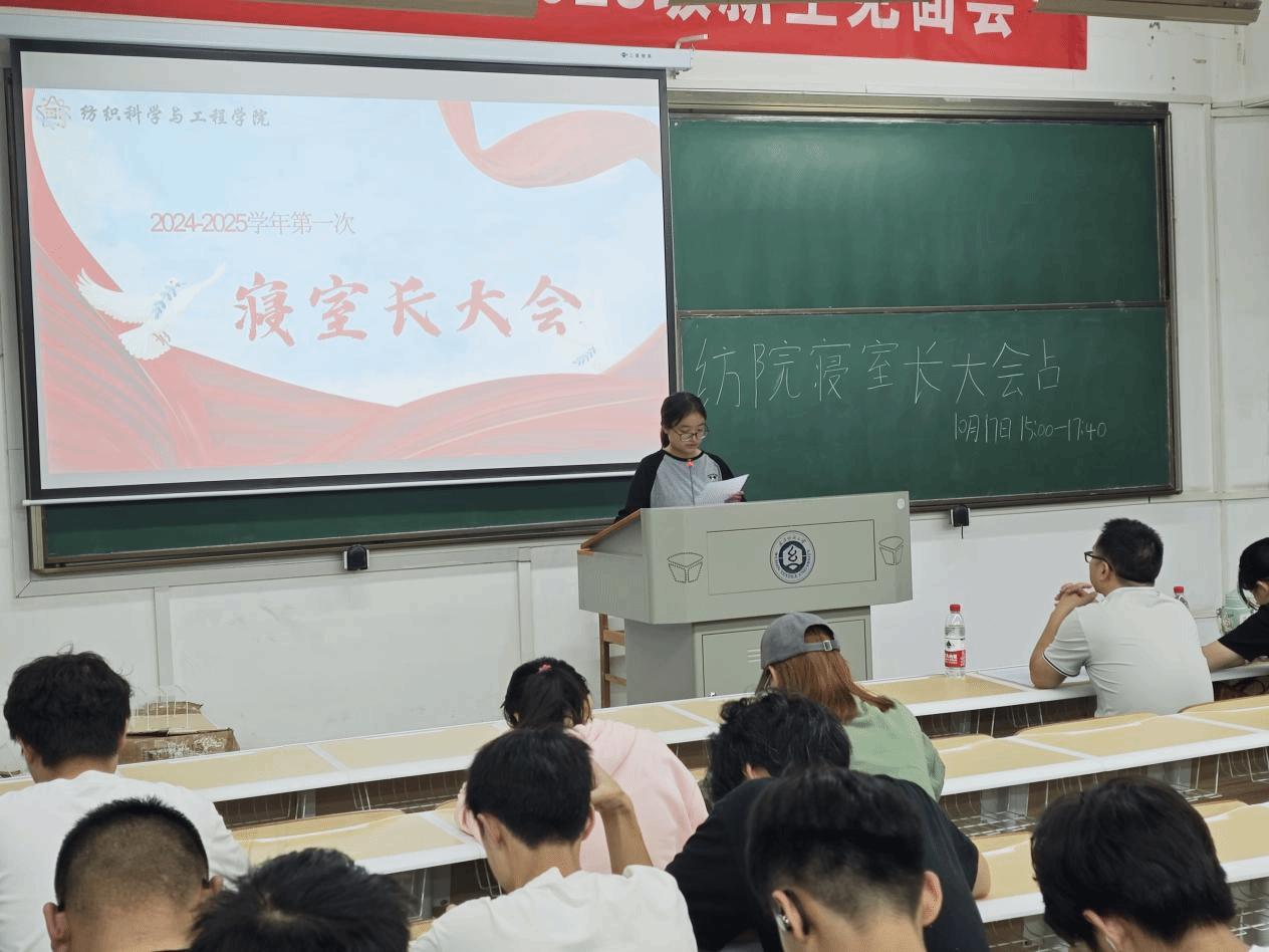 学工办主任梁祥云、23级辅导员向婷以及纺织科学学院21-24级各寝室长、宿管会成员、心理委员共同参会。