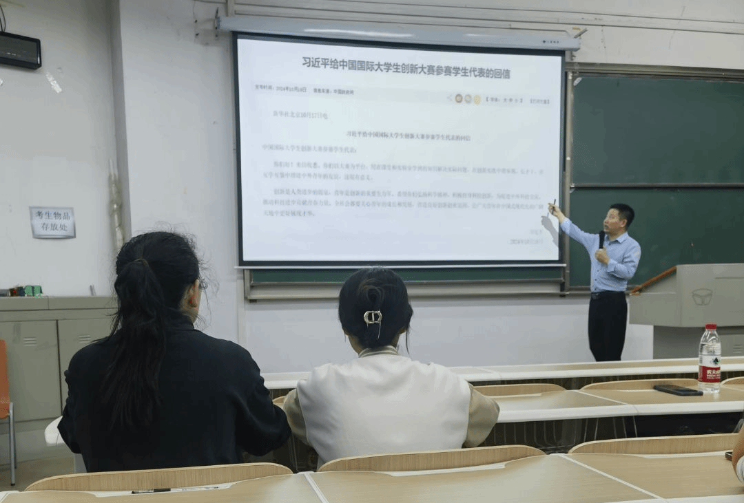 随后,张老师以当前就业现状为切入点,指出当前企业需要的是新质生产力,同学们要理解当下形势,适应环境,鼓励同学们积极参与各类赛事,积极进行高校间项目交流活动等,提高自己的认知水平和创新能力,并在参与赛事时提高自己的责任意识,为国家、为社会、为人民做出更多的贡献。