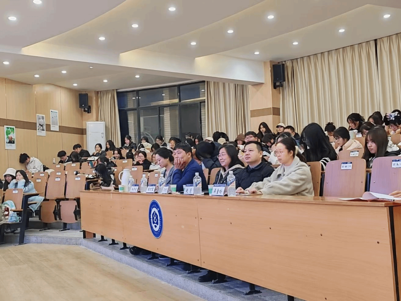 学生工作负责人赵亮、辅导员吴童玲老师担任评委。进入决赛的6支参赛团队及200多名学生代表观看了本次比赛。