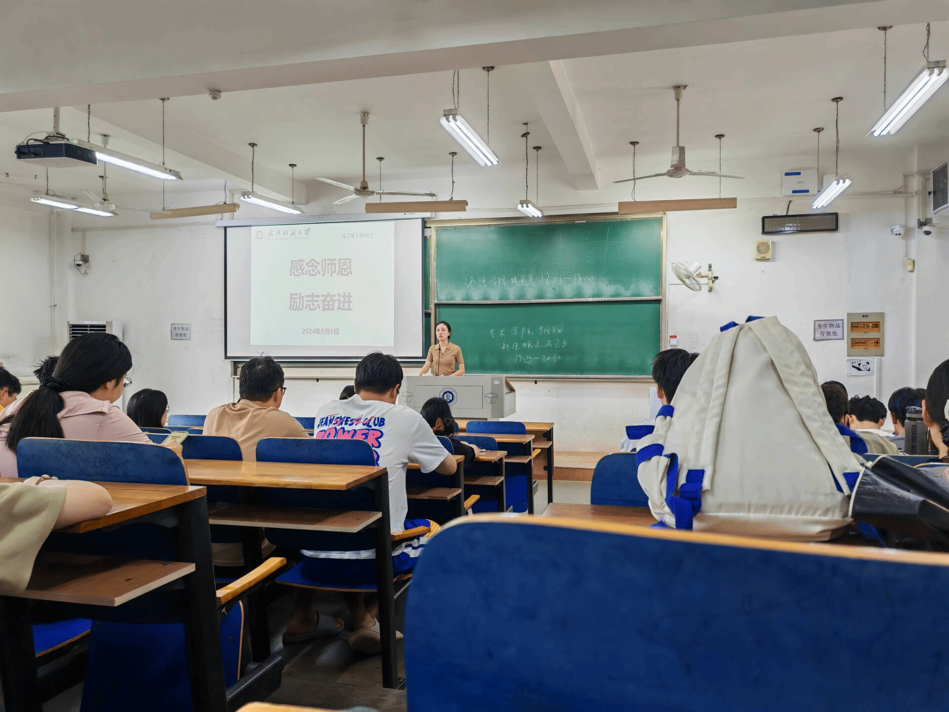 22级于2024年9月8日开展“感念师恩,励志奋进”年级大会,此次活动由22级辅导员王然主持,22级全体学生参与。