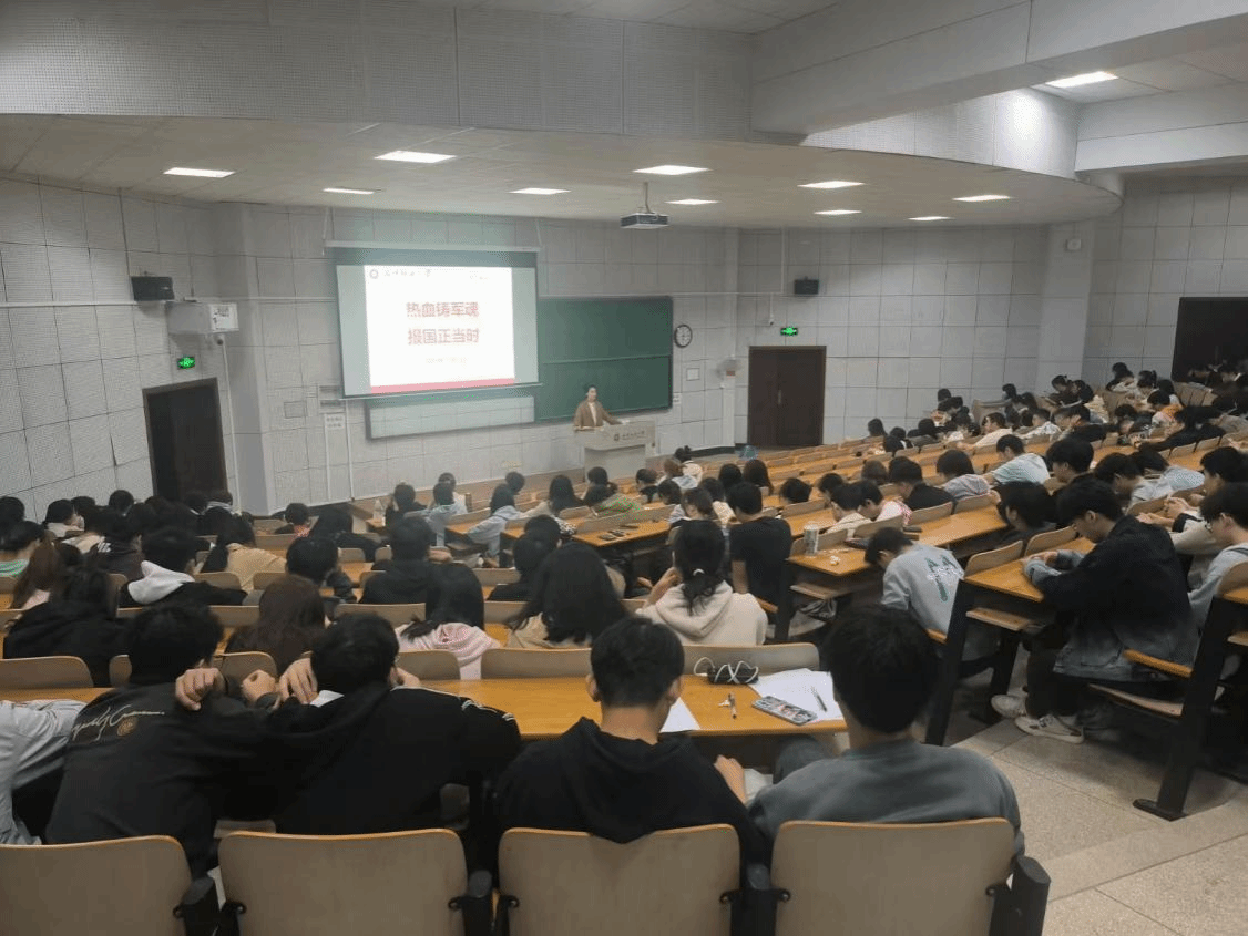 22级于2024年11月3日开展“热血铸军魂,报国正当时”年级大会。此次活动由22级辅导员王然主持,22级全体学生参与。