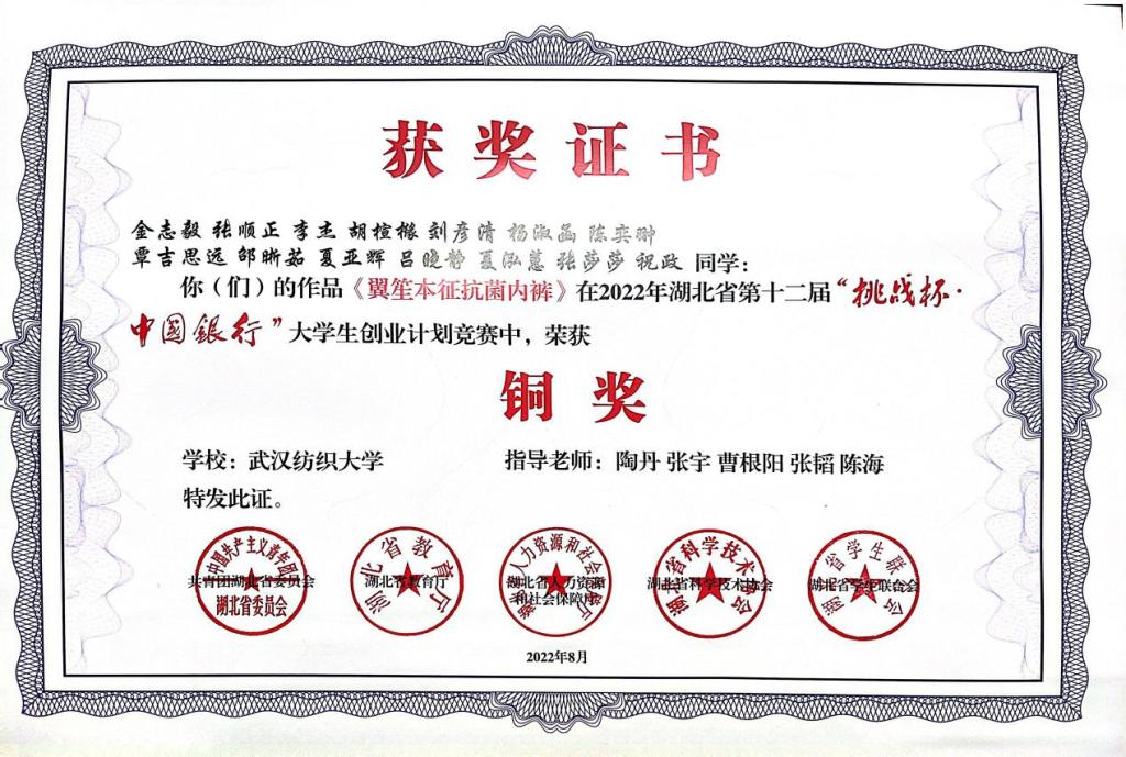 “我的科技成果一定要普惠到更多的人,要能够为服务于社会需求!”说起创业的初衷,他总会这样说。在疫情期间,他发现脱掉闷热的防护服的医生满身是汗,这不仅会大量滋生细菌,还会影响到医生的健康,于是他召集自己的同学一同创建了武汉市东锦湖商贸有限公司,并担任法人一职创造了属于自己的抗菌内衣。实现了把在实验室所学习的专业知识在实践中完成转化的探索,目前公司的空气管理技术应用于稳健集团大健康产品、耐晒颜色技术应用于空军飞行员抗荷服。
