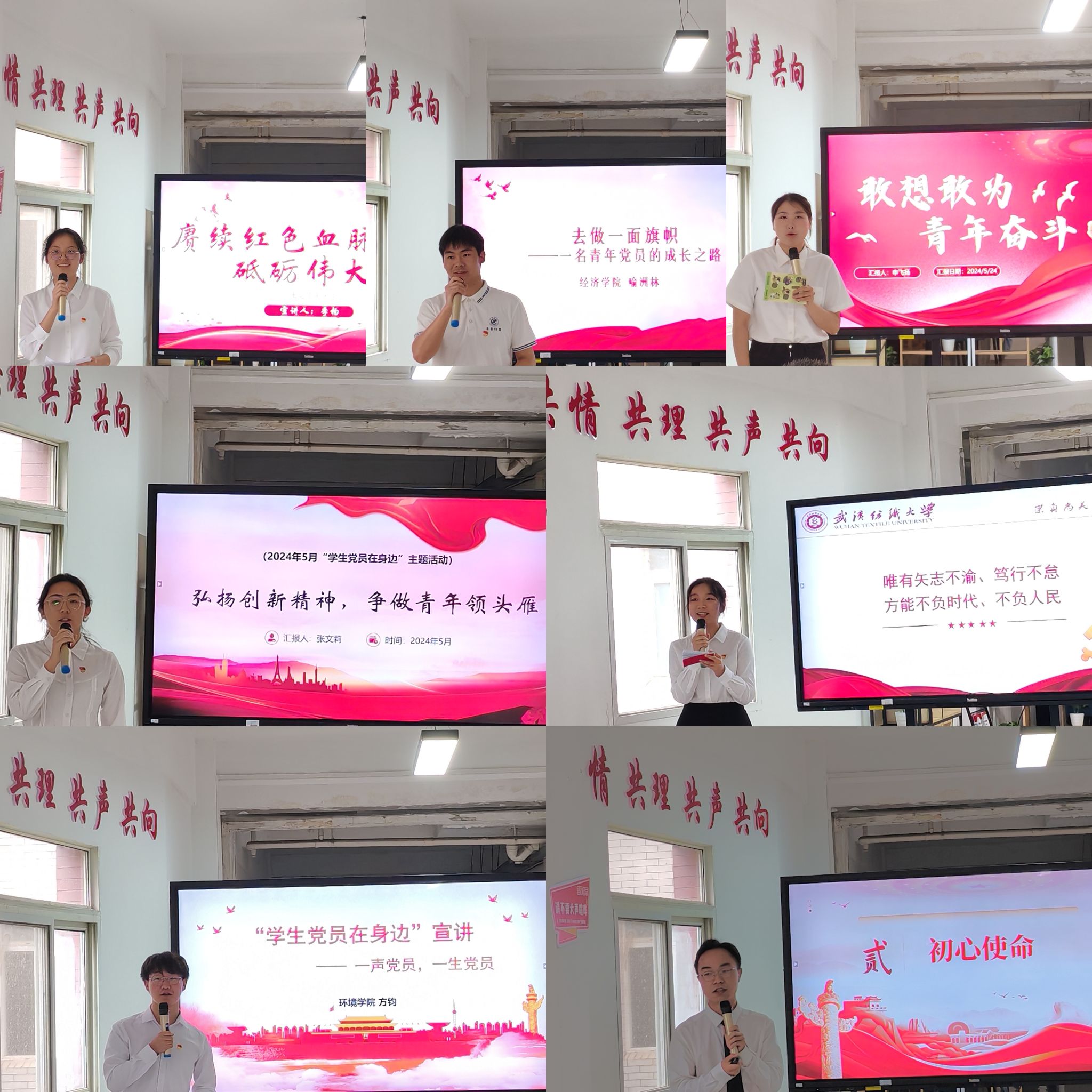 、材料学院、电气学院、环境学院、会计学院、经济学院等7名优秀学生党员回顾了党的百年历程,从入党动机、志愿服务工作经历、科研成果等方面全面讲述自己践行党员初心使命的奋斗历程。在这7名优秀学生党员中有砥砺前行、奋发进取的科研达人,有初心未改、服务群众的志愿者,有思想进步、引领党建的党支部书记。“学生党员在身边”主题宣讲活动是一次思想的碰撞,一次情感的交流,亦是一次对先进党员精神风貌的深入挖掘和展示;这是一面展示先进党员群体风采的镜子,更是一方传承红色基因、激励广大研究生砥砺奋进的舞台。