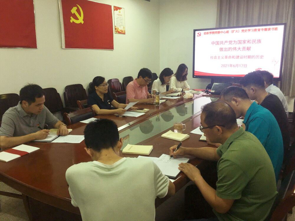 党委第二期党史学习教育专题读书班开讲。本期读书班以“中国共产党为国家和民族作出的伟大贡献”、“社会主义革命和建设时期历史”为主题,学院党委书记张红鑫主持学习会。全体领导班子成员、学院党委委员、各党支部书记参加了学习会。