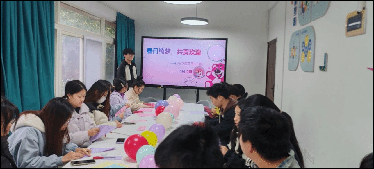 织心湾于十三栋一站式为纺院全体学生中的寿星们举办了一场别开生面的集体生日会,主题为“花漾纸艺手作局——以纸折花迎新春”,现场充满欢声笑语,洋溢着浓浓的温情。