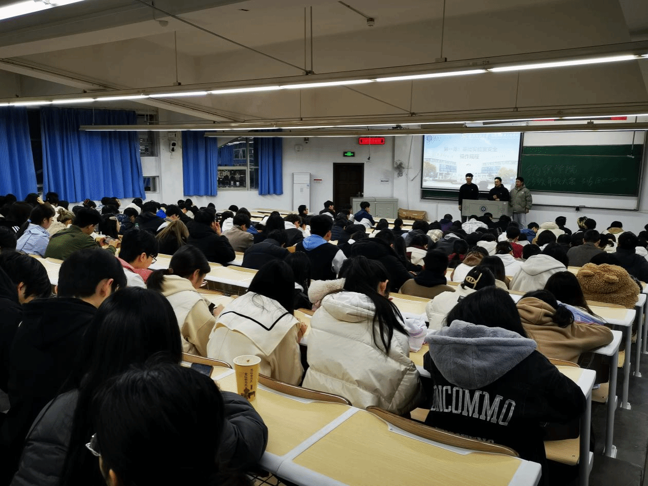在3栋T101教室举办了以“党员先锋显担当,实验安全促科研”为主题的实验室安全与操作培训会。本次培训会由辅导员向婷主持,23级全体学生参会。