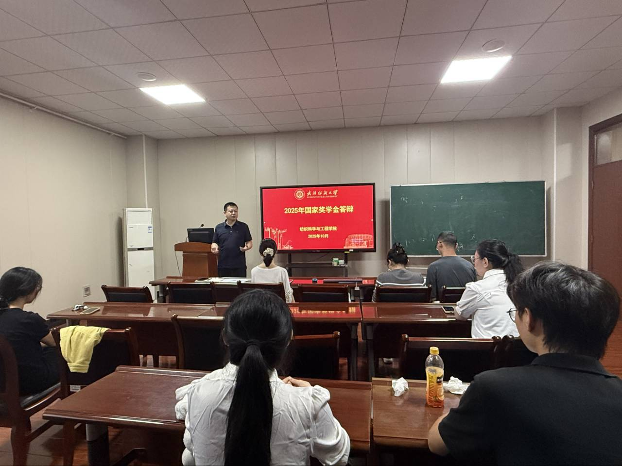 于8H502会议室举行了国家奖学金答辩评审会。学生工作负责人赵亮及各年级辅导员共同出席本次活动并担任评委,来自2022级、2023级、2024级的11名学生参与了答辩。
