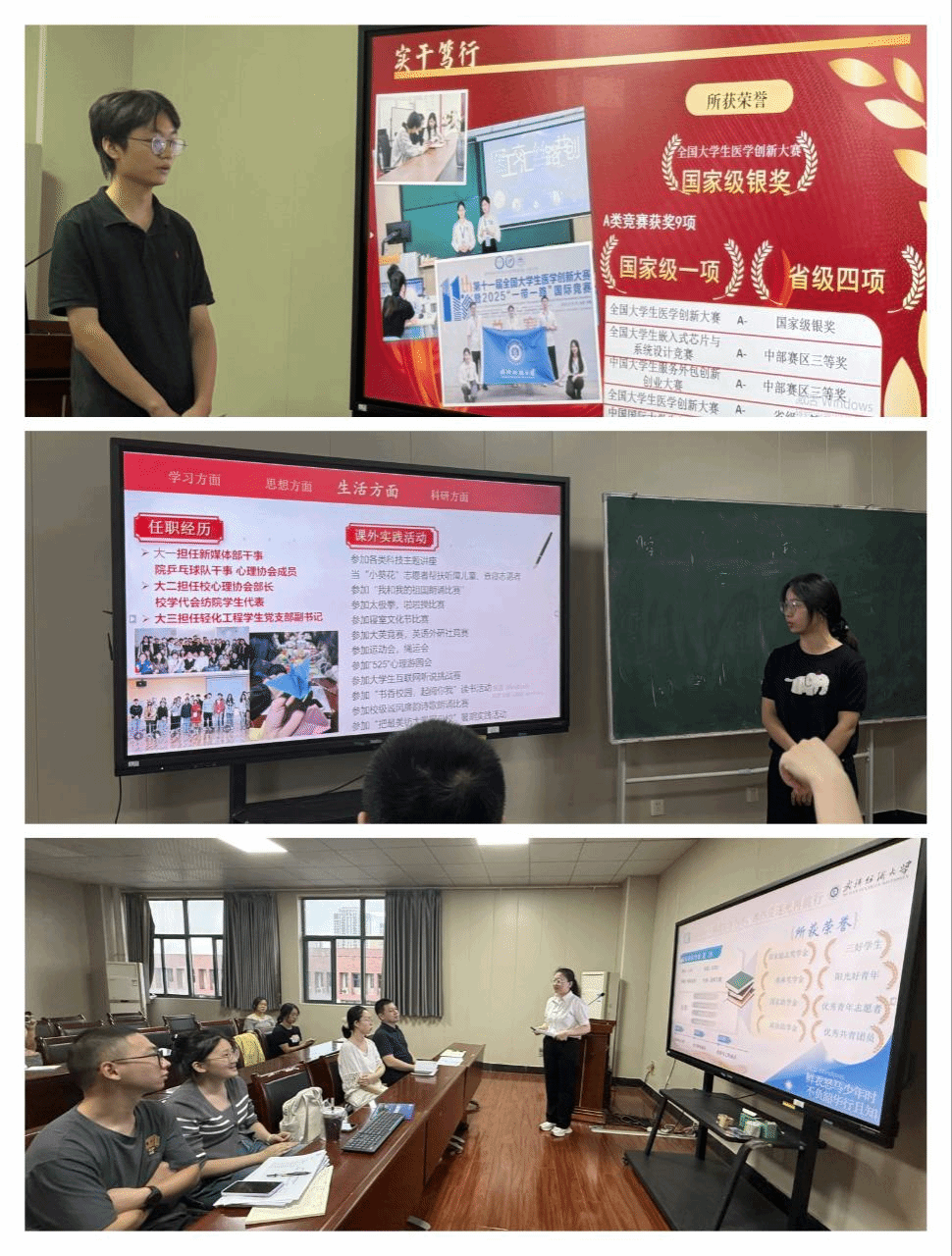 答辩现场,候选人借助PPT展示、个人陈述及现场问答等多种形式,全方位呈现了自己的成长轨迹与奋斗历程。一句句掷地有声的陈述,一张张记录成长的图片,一个个动人心弦的故事,生动展现了我校学子志存高远、自强不息的精神风貌。他们凭借扎实的学业功底、显著的科研成果和丰富的实践经历,充分彰显了新时代大学生的责任与担当。