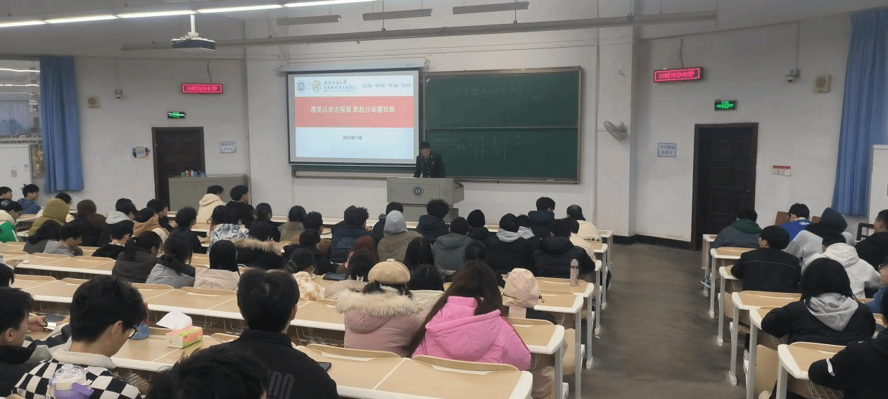 于2023年11月30日在3-T202开展了2024年朋辈领航讲座,此次讲座由优秀入伍士兵郭子扬主讲。
