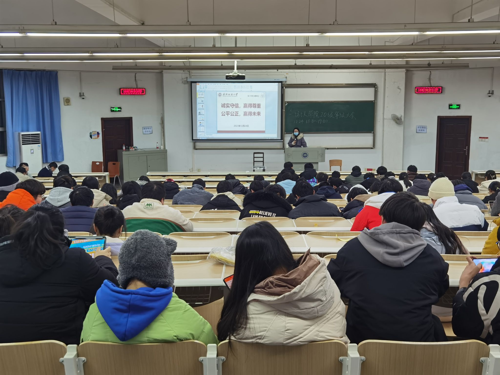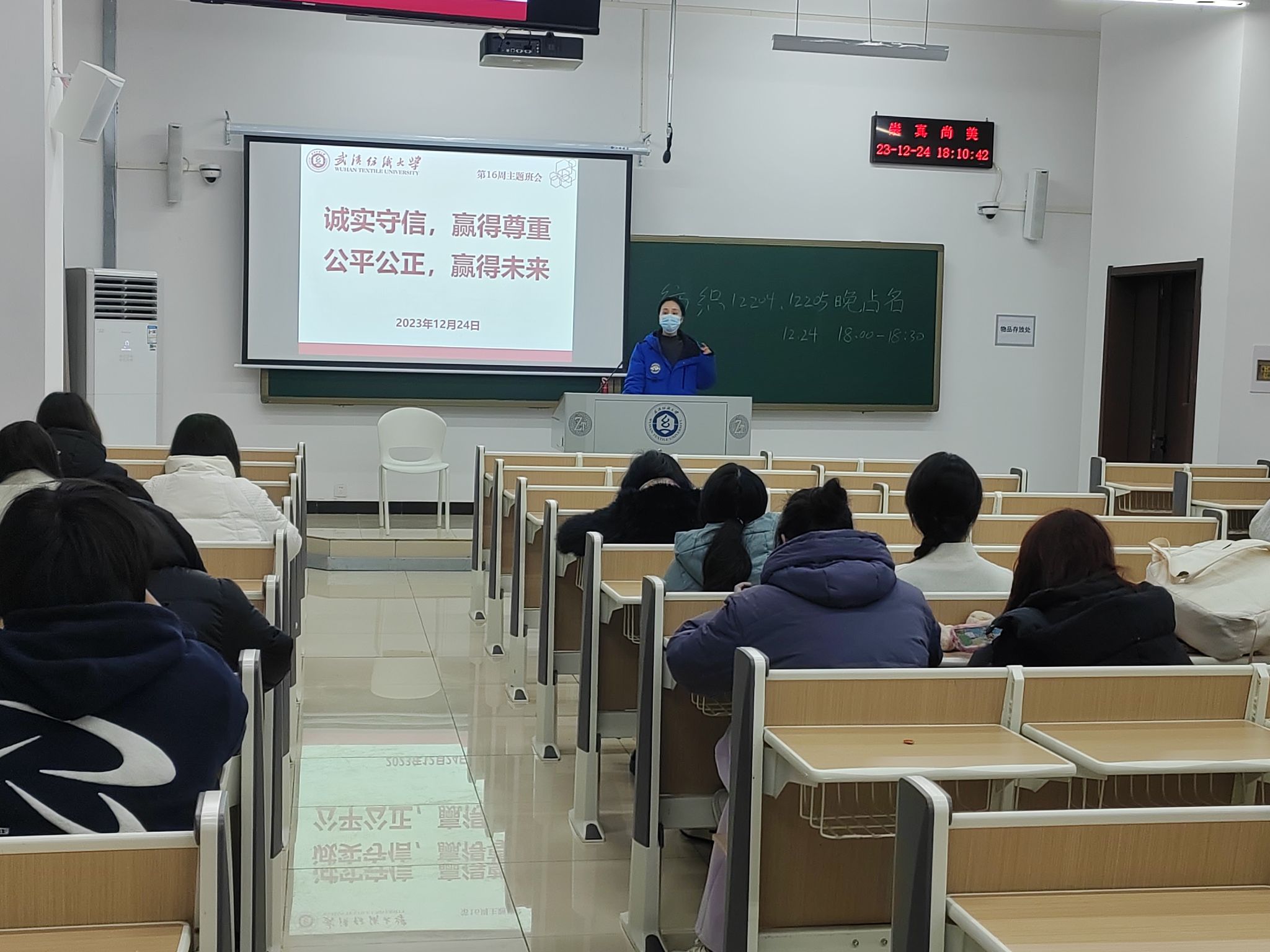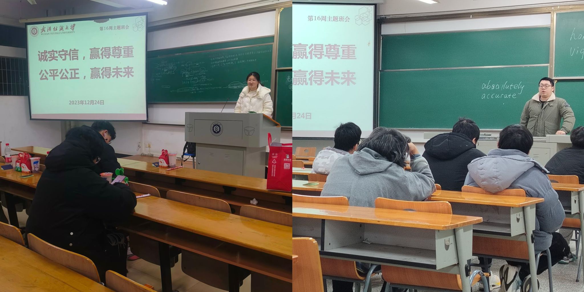 于12月24日开展“诚实守信,赢得尊重,公平公正,赢得未来”主题班会。该活动由各年级辅导员、班主任及全体学生共同参与。