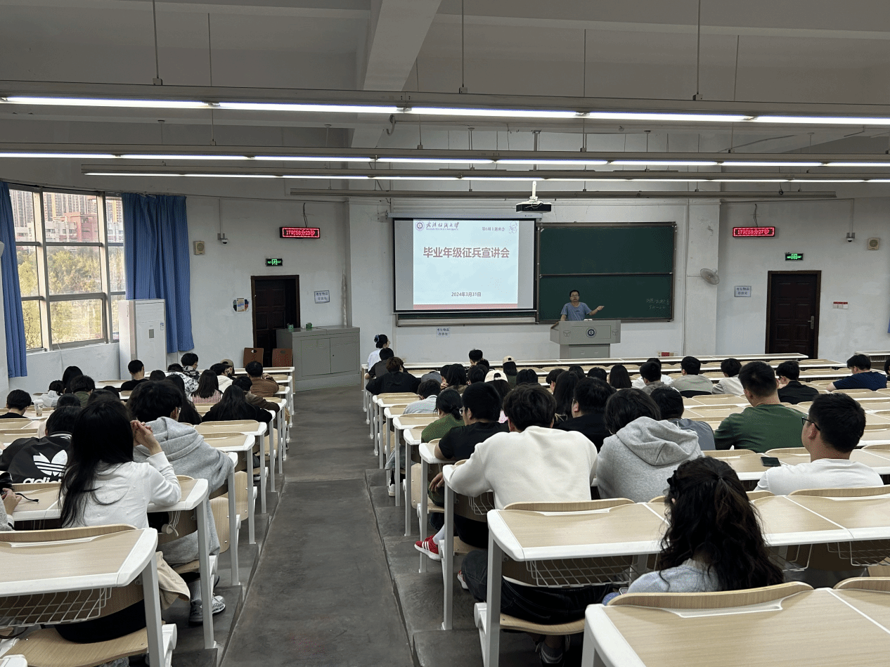 学办主任梁祥云老师主讲,全体20级学生和有意愿征兵入伍的学生代表共同参与。