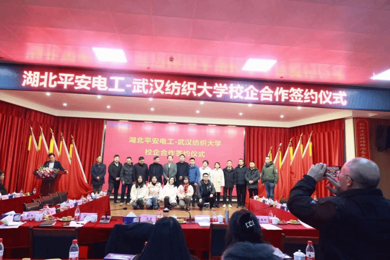 学——平安电工校企合作签约仪式在湖北平安电工集团公司隆重举行,双方将在人才培养、产学研用、服务地方经济等方面开展合作。