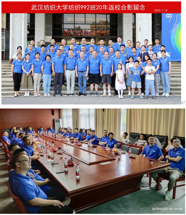 为了这场盛会,纺织992班的校友专门组建了筹备小组,校友们提前自己设计、排版,并制作了含有母校徽章的Polo衫,订好酒店,力争让所有返校的同学度过一次愉快而难忘的师生座谈会。与会的28名(全班34人)校友中,除了1名校友常驻武汉,其他27名校友都是从全国各地千里奔赴而来。15日上午,校友们在班主任陈良栋老师的带领下一同参观芒果tv
