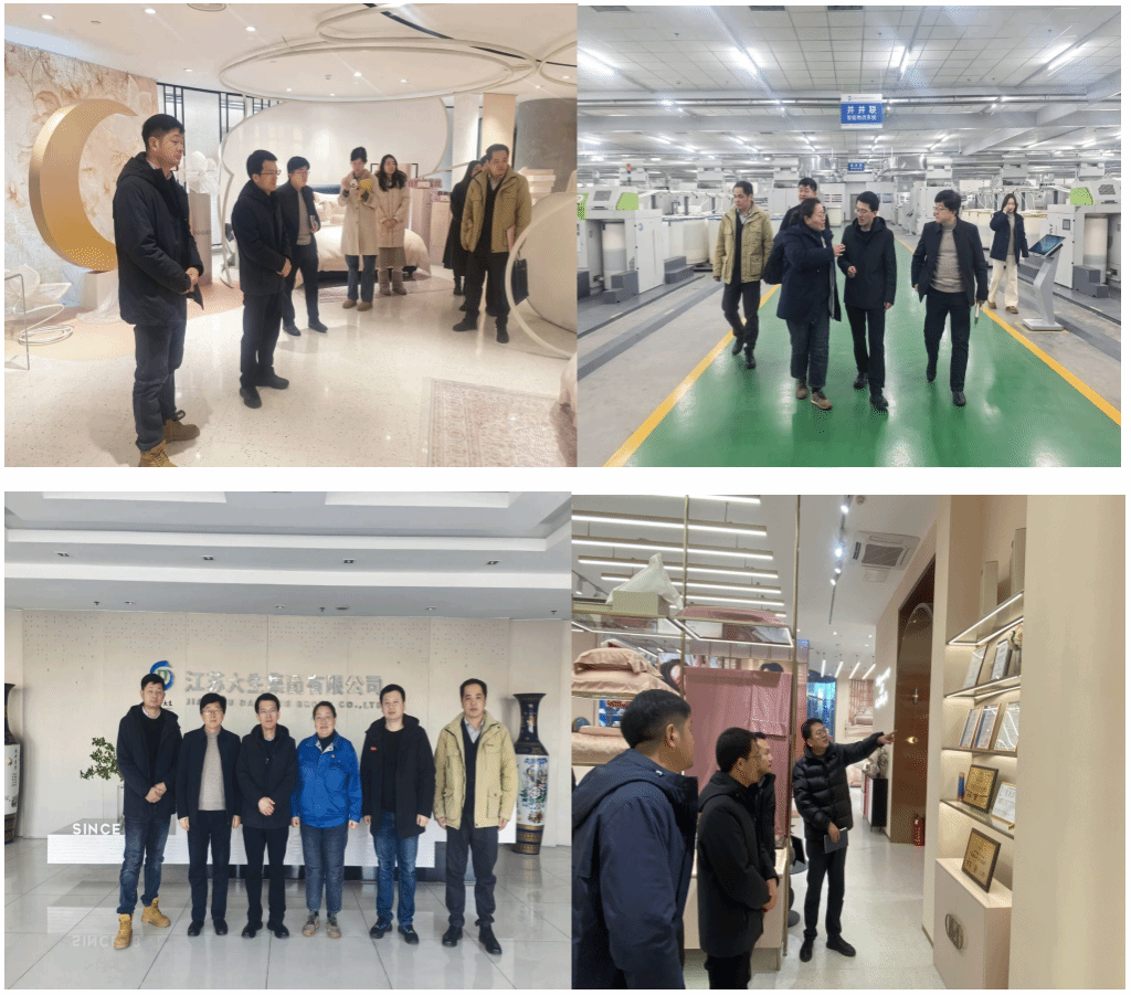 朱张军一行先后走访参观了南通森达装饰材料有限公司、江苏美罗家用纺织品有限公司、江苏金太阳纺织科技有限公司、江苏大生集团有限公司等,深入了解各企业在主营业务、产业布局、技术革新以及人才需求等方面的基本情况。