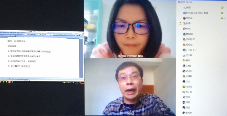 2020年4月16日下午2:00芒果tv 采用qq视频会议方式召开了2020芒果tv 研究生培养及招生研讨动员会,学院主要领导、研究生导师及研究生培养工作人员参加了本次会议。首先张如全院长介绍了学院研究生培养工作的现状,以及受疫情的影响,今年研究生招生工作面临的极大困难和挑战。张强副院长介绍了学院招生调剂优惠政策并通报了目前研究生招生的情况。学院前期统计了34所开设纺织专业的高校,动员全体硕士生导师充分利用各种渠道,...
